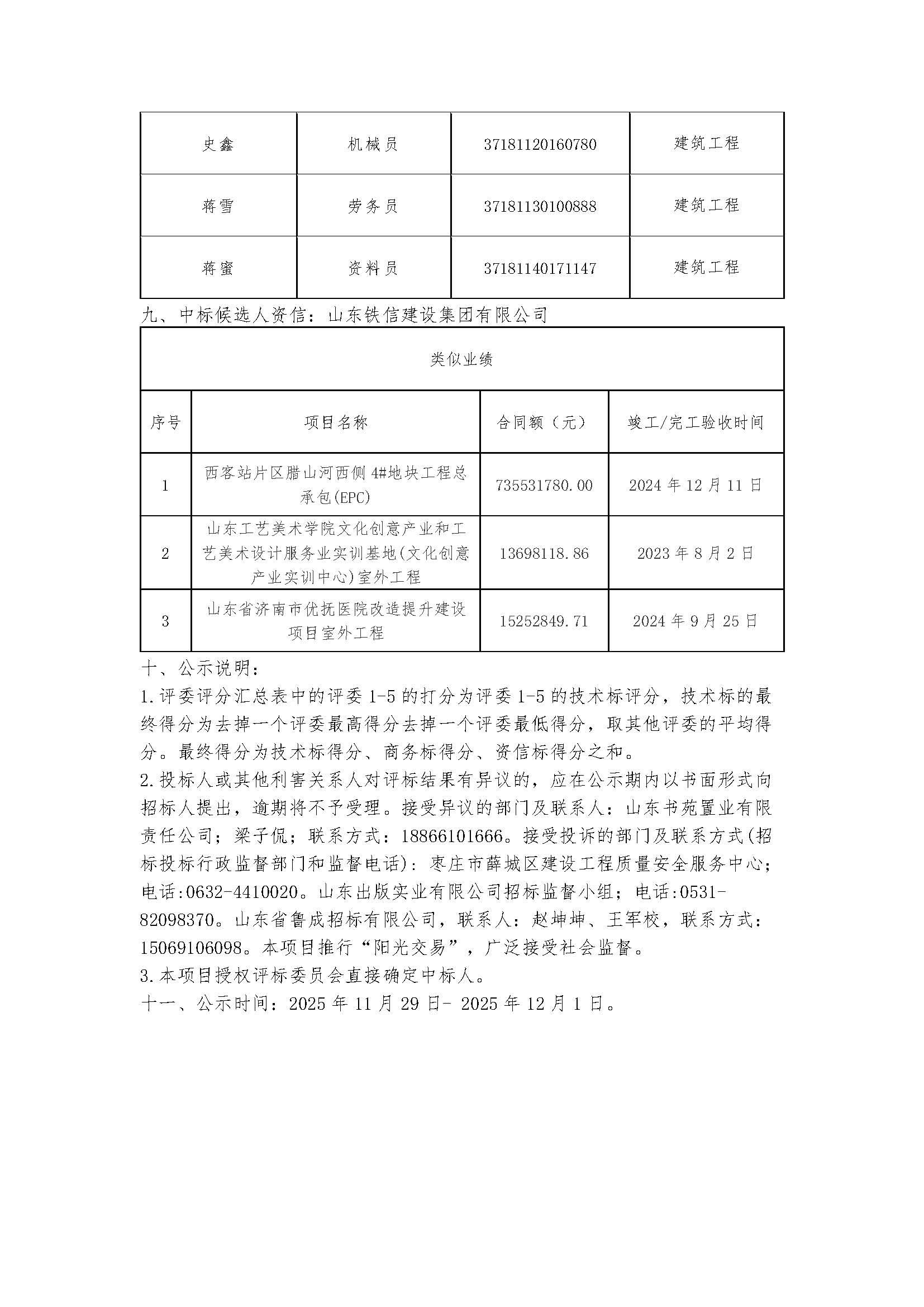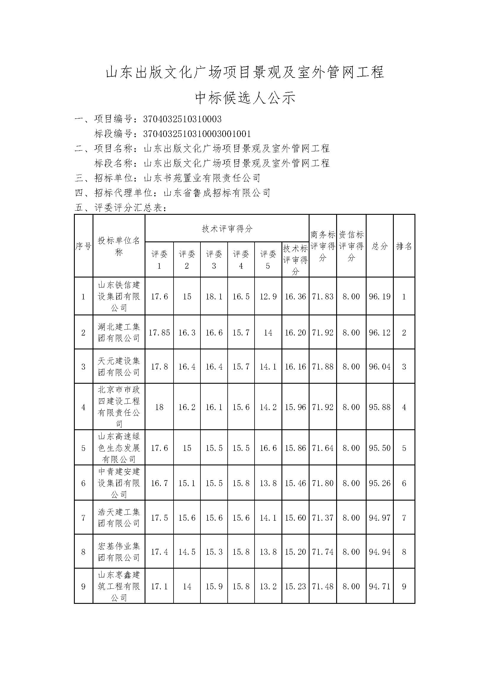 山东出版文化广场项目景观及室外管网工程中标候选人公示